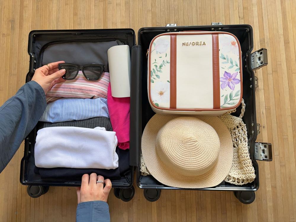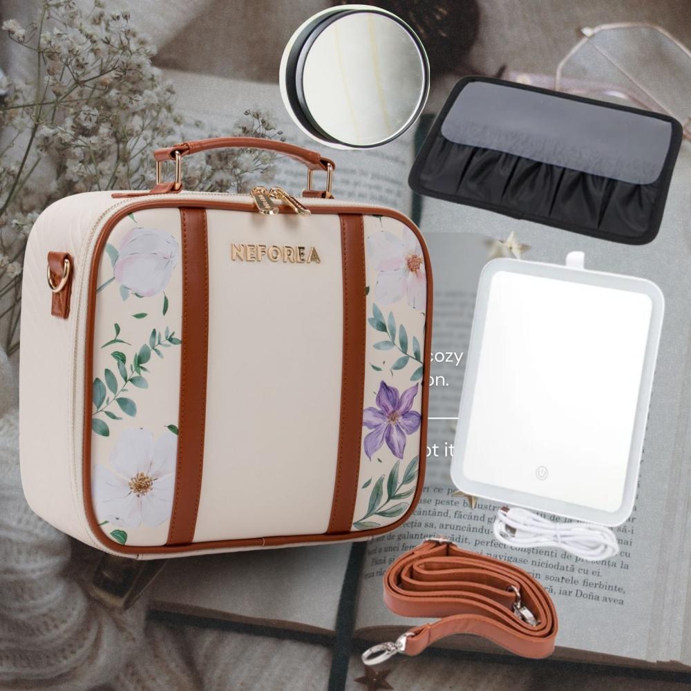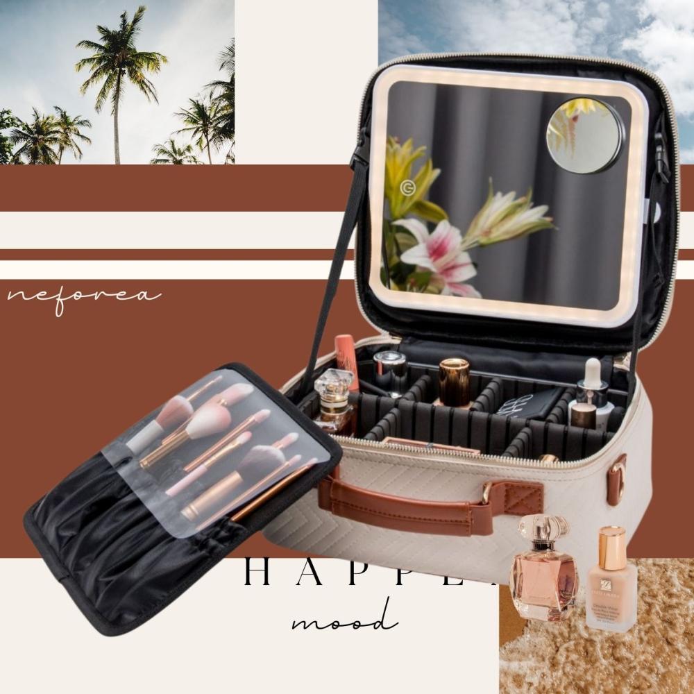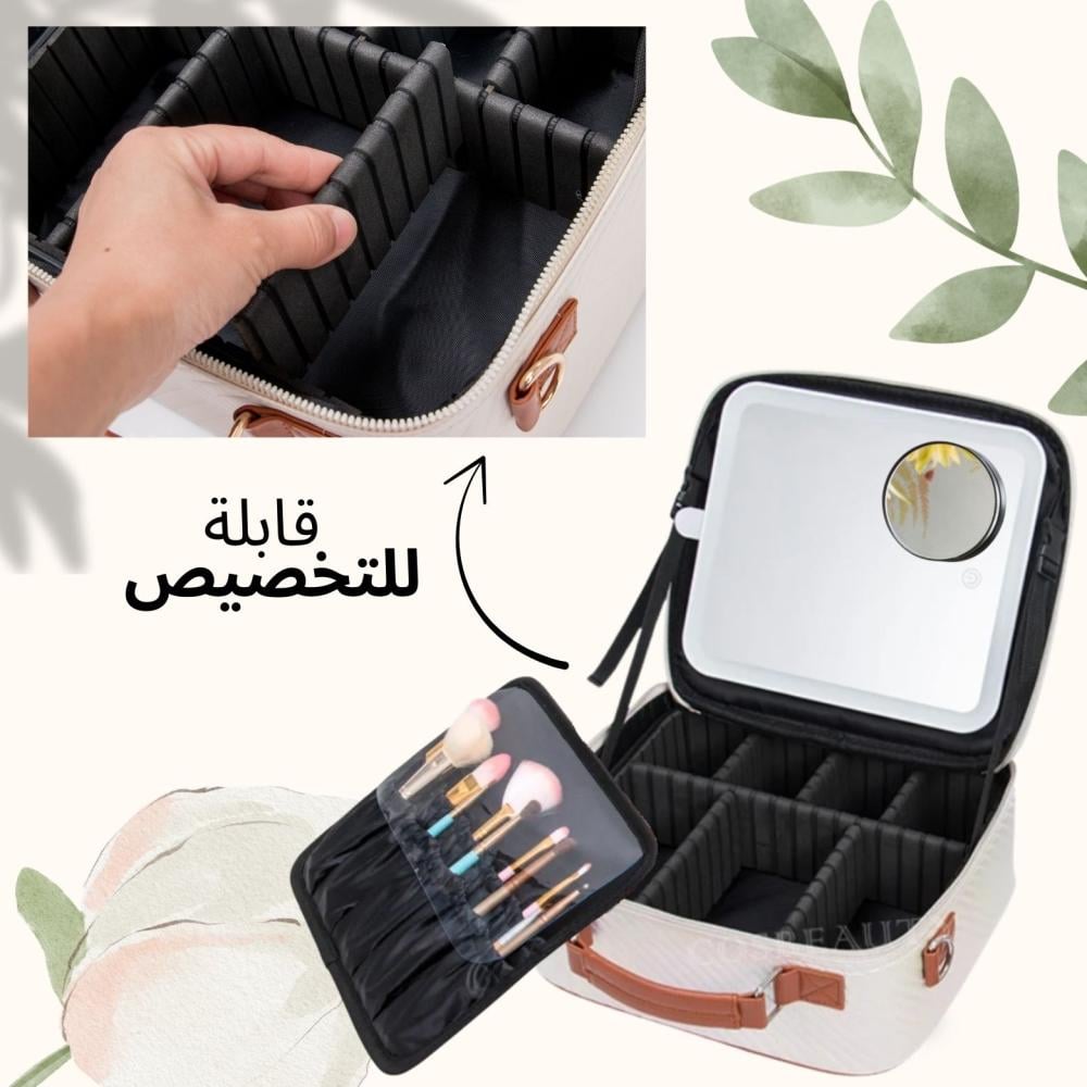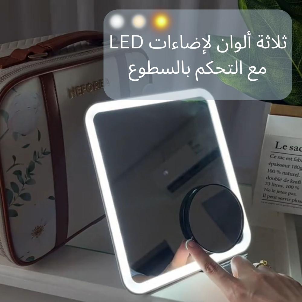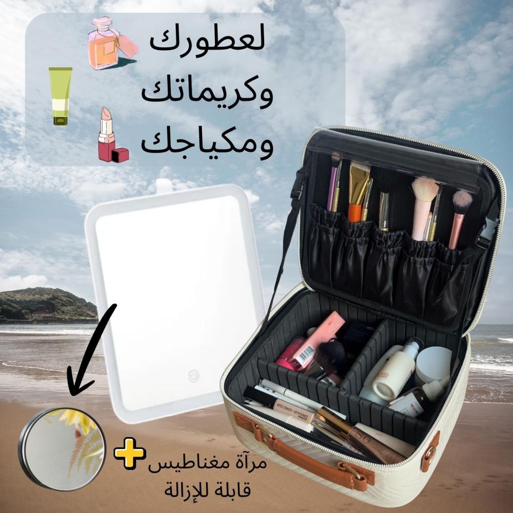 شنطة مكياج مع " مرآة داخلية بإضاءة LED بثلاث إضاءات مختلفة " مناسبة للإهداء أو السفر أو العمل أو لطلعاتك اليومية ️