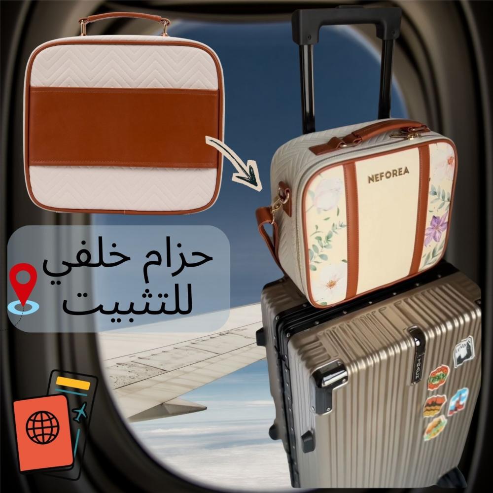 شنطة مكياج مع " مرآة داخلية بإضاءة LED بثلاث ألوان مختلفة للإضاءة مع القدرة على التحكم بالسطوع " مع حزام كتف وحزام خلفي لحقائب السفر مناسبة للإهداء أو السفر أو العمل أو للرحلات الطويلة أو لطلعاتك اليومية